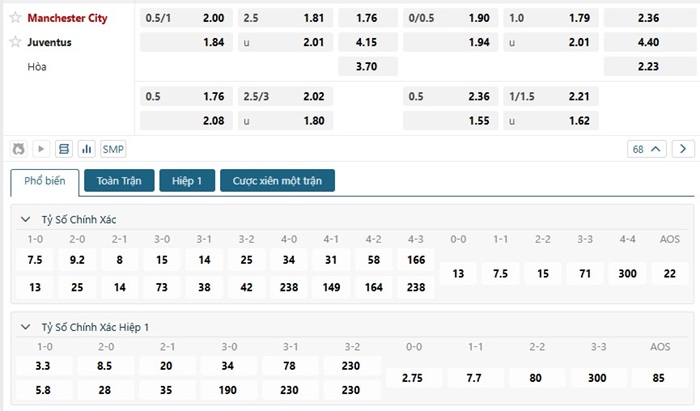 So với Juventus thì Manchester City hiện nay đang là cái tên có phần được đánh giá cao hơn, điều này cũng được thể hiện thông qua mốc kèo châu Á đang được ấn định hiện tại. Nhưng dù vậy đây cũng sẽ là một thử thách không hề dễ dàng với Manchester City khi mà đại diện Serie A cũng đang thể hiện được những quyết tâm rất lớn, thực lực của hai đội được đánh giá hiện tại cũng không phải là điều quá chênh lệch với nhau do vậy mà với kèo châu Á được niêm yết hiện tại thì Juventus vẫn là lựa chọn an toàn.