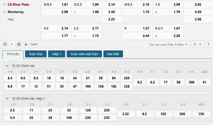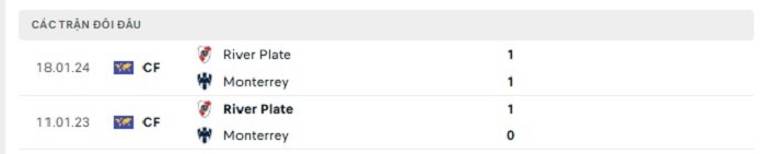 Quá khứ ít nhiều cũng đang đứng về phia River Plate trong những lần gặp Monterrey trước đây, cụ thể là 2 lần gặp nhau trước đây họ đang bất bại trước đối thủ với 1 trận thắng kèo châu Âu và 1 trận hoà. Xét về mặt phong độ trong thời gian qua có thể thấy được River Plate đang thể hiện được sự ổn định khi họ đang bất bại 10 trận gần nhất với 7 trận thắng kèo châu Âu chung cuộc, vì vậy mà một chiến thắng trước Monterrey ở vòng đấu thứ 2 này cũng chính là điều mà họ đang hướng tới