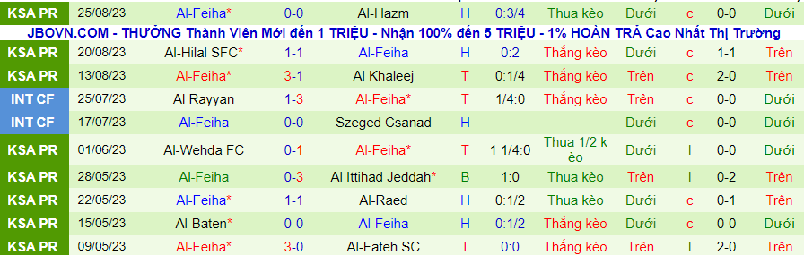 Trong khi đó, Al Feiha vẫn chưa chịu thất bại nào ở mùa giải này khi thắng 1, hòa 2. Điều đó cho thấy đội bóng này không dễ bị đánh bại. Tỷ lệ thắng kèo của Al Feiha trong thời gian qua cũng ở mức khá vs 3/4 trận đấu.