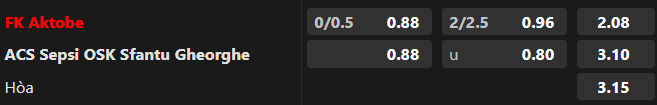 Tỷ lệ kèo Aktobe vs Sepsi