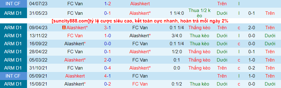 Van Yerevan chỉ thực sự chơi tốt trên sân nhà. Còn trên sân khách, đội bóng này khá vô hại khi toàn thua trong 8 trận đấu gần nhất và thua kèo trong cả 8 trận đấu. Đây là cơ hội tốt để Alashkert hướng tới chiến thắng.