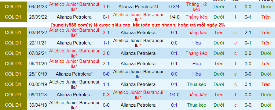 Tuy nhiên, đội bóng này vẫn cần cải thiện khả năng thi đấu trên sân khách khi thua tới 3/5 trận đấu gần đây. Nhưng đổi lại, Junior Barranquilla chiếm ưu thế về đối đầu khi gặp Alianza Petrolera. Họ đã thắng 4/5 trận gần nhất gặp đối thủ này.