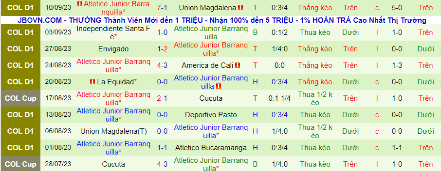Junior Barranquilla không quá ấn tượng trong mùa giải này nhưng họ đã có cú nhảy vọt trong thời gian qua khi giành chiến thắng trong 3/4 trận đấu gần nhất. Trong đó, Junior Barranquilla thắng kèo 4/5 trận gần đây.