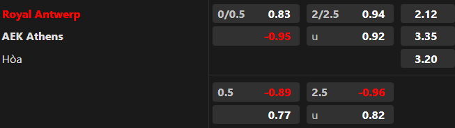 Tỷ lệ kèo Antwerp vs AEK Athens