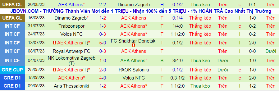 Trong thời gian qua, AEK Athens là kênh đầu tư tốt về kèo khi thắng kèo 4/5 trận gần đây. Ngay cả trên sân khách, đại diện của Hy Lạp cũng rất đáng sợ khi thắng tới 14/18 trận hành quân xa nhà gần đây.