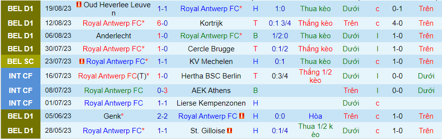 Tuy nhiên, Antwerp vẫn giữ được sự ổn định trên sân nhà. Tính trong các trận đấu chính thức, đội bóng này đã thắng 13/18 trận gần đây ở sân nhà. Trong đó, Antwerp thắng kèo 12/16 trận gần đây.
