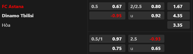 Soi kèo tài xỉu: Astana thi đấu khá thực dụng. Thống kê cho thấy 11/14 trận đấu gần nhất của CLB này chứng kiến ít bàn thắng. Tương tự, 2 trận gần đây của Dinamo Tbilisi cũng có kịch bản này. Điều đó đang hướng tới kịch bản ít bàn thắng trong bối cảnh nhà cái để cột mốc tài xỉu khá thấp là 2 1/4.