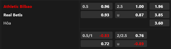 Soi kèo tài xỉu: Cặp đấu này không thực sự hấp dẫn. Thống kê cho thấy 7/10 trận đấu gần nhất của hai đội có kịch bản Xỉu. Trong khi đó, 10/11 trận gần đây của Bilbao và 5/6 trận gần đây của Betis chứng kiến ít bàn thắng.