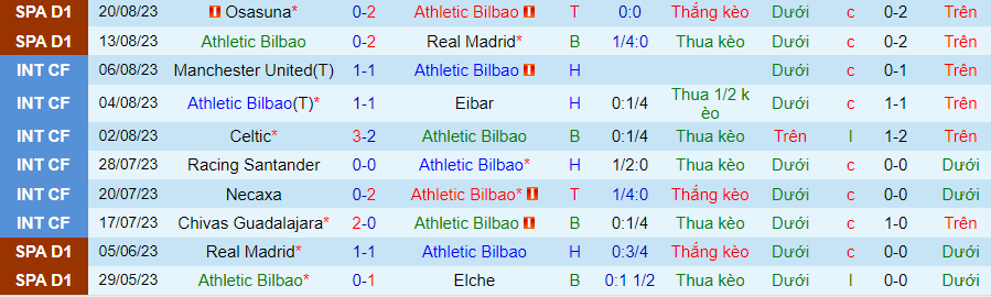 Tại sân nhà, Bilbao đã thất bại trong 4/5 trận đấu gần đây. Bilbao cũng không phải là kênh đầu tư tốt khi thi đấu trên sân nhà khi thua kèo 11/13 trận gần đây. Điều đó cho thấy việc được thi đấu tại San Mames chưa chắc là lợi thế của CLB xứ Basque trong trận đấu này.