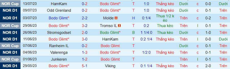 Có rất ít sai số ở Bodo Glimt trong thời gian qua. Trong 15 trận đấu gần nhất trên mọi đấu trường, Bodo Glimt đã giành chiến thắng tới 13 trận. Trong đó, nhà ĐKVĐ giải Na Uy đã thắng kèo trong 11/15 trận gần nhất.