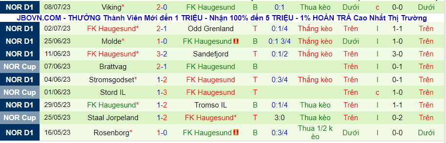 Lúc này, Haugesund đang xếp ở vị trí thứ 11 trên bảng xếp hạng vs 15 điểm, chỉ hơn nhóm cầm đèn đỏ 5 điểm. Tỷ lệ thắng kèo của Haugesund chỉ ở mức trung bình là 46,15%, kém xa so vs Bodo Glimt là 71,43%.