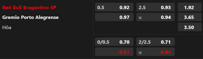 Soi kèo châu Á: Điểm ăn ở cửa Bragantino chấp -1/2 đã giảm từ -0.97 xuống 0.92. Niềm tin đang hướng về đội chủ nhà. Việc Gremio quá yếu đuối trên sân khách là nguyên nhân dẫn tới sự nghi ngờ. Dù sao, Bragantino vẫn bất bại 12 trận liên tiếp trên sân nhà. Trong cả 2 lần đón tiếp Gremio trong quá khứ, Bragantino đều chiến thắng.