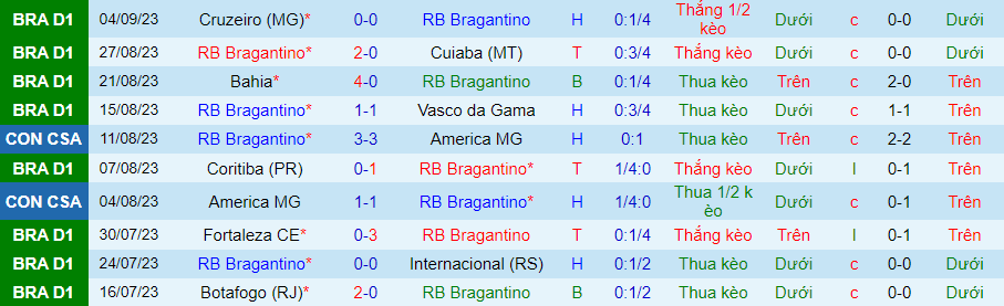 Bragantino chỉ thua 1/9 trận đấu gần nhất trên mọi đấu trường nhưng thực tế, phong độ của họ không quá nổi bật khi chỉ thắng 3/9 trận gần đây. Do đó, họ vẫn thua kèo trong 7/11 trận đấu gần đây.