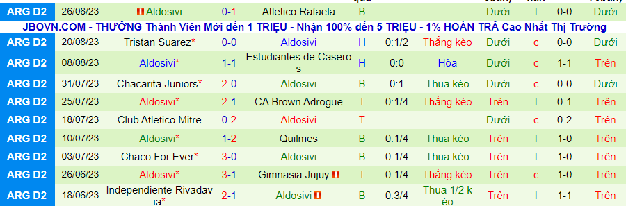 Aldosivi cũng không có phong độ tốt trong thời gian qua khi không giành chiến thắng trong 4 trận đấu liên tiếp. Trong đó, Aldosivi chỉ thắng kèo 1/4 trận đấu này. Lúc này, Aldosivi đang xếp ngay dưới CA Atlanta vs 2 điểm ít hơn.