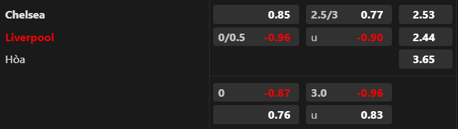 Soi kèo tài xỉu: Dù cho những cuộc đối đầu của hai đội trong những năm qua chủ yếu có ít bàn thắng nhưng sự chuyển dịch kèo ở trận này cho thấy niềm tin vào khả năng trận đấu bùng nổ. Điểm ăn ở cửa Tài 2 3/4 đã giảm sâu từ 0.93 xuống 0.77. Thống kê cho thấy 12/15 trận gần đây của Liverpool và 6/10 trận gần đây của Chelsea nổ Tài. Điều đó hé mở kịch bản bùng nổ.