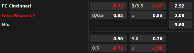 Tỷ lệ kèo Cincinnati vs Inter Miami
