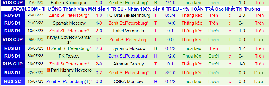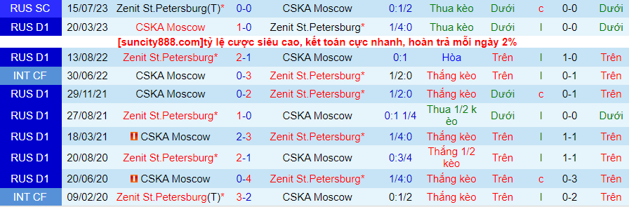 Lịch sử đối đầu giữa CSKA Moscow vs Zenit
