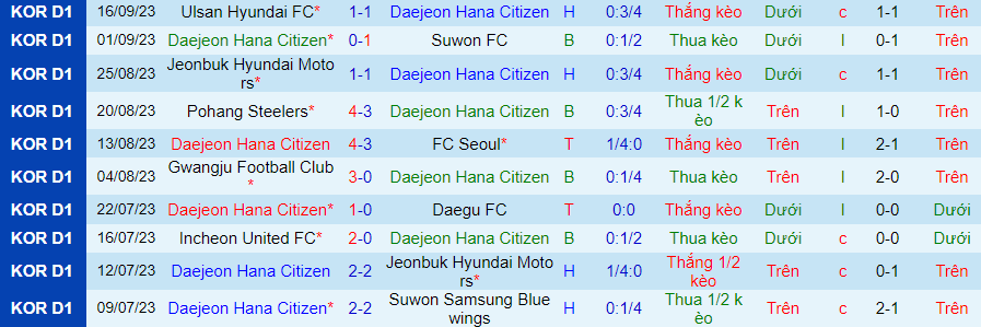 Dù sao, trên sân nhà, Daejeon thi đấu khó chịu hơn khi chỉ thua 1/6 trận đấu gần nhất (thắng kèo 3/4 trận đấu gần đây). Nơi đây có thể giúp Daejeon tìm được sức bật trong giai đoạn vô cùng khó khăn này.