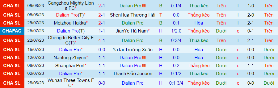 Trong thời gian qua, Dalian Pro thi đấu khá kém cỏi khi chỉ thắng 1/10 trận đấu gần nhất. Chiến thắng duy nhất của CLB này lại là trước đội bóng nhóm đầu là Shanghai Shenhua. vs việc Dalian Pro chỉ thua kèo 2/8 trận gần đây cho thấy họ kháng cự khá tốt vs kèo chấp sâu.
