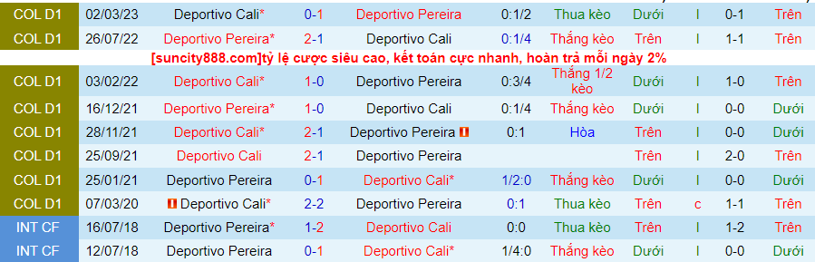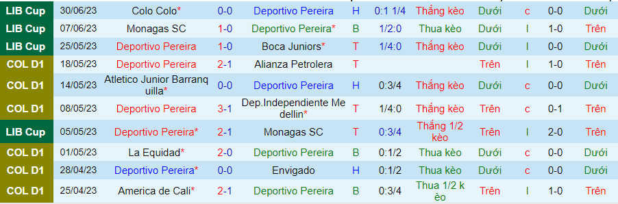 Ở giai đoạn Apetura mùa giải này, Deportivo Pereira không thi đấu không tốt khi chỉ đứng thứ 12 trên bảng xếp hạng và không lọt vào vòng đua vô địch. Dù sao, Deportivo Pereira cũng là kênh đầu tư tốt trong thời gian qua khi thắng kèo 6/7 trận gần đây.