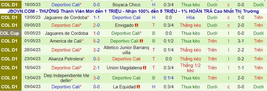 Dù sao, ở giai đoạn cuối Apetura, Deportivo Cali đã chơi tốt khi chỉ thua 1/7 trận gần nhất, trong đó họ thắng kèo trong 5/7 trận đấu. Trên sân khách, Deportivo Cali hơi đuối khi thua tới 6/8 trận đấu gần đây.