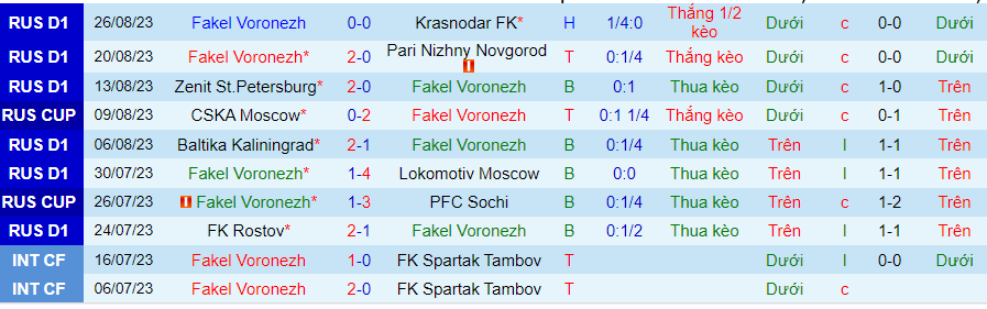 Tuy nhiên, Fakel đang có dấu hiệu tiến bộ trong thời gian qua. Họ đã thắng 1, hòa 1 trong 2 trận gần nhất ở giải VĐQG Nga. Bên cạnh đó, CLB này cũng là kênh đầu tư tốt khi thắng kèo trong 3/4 trận đấu gần đây.
