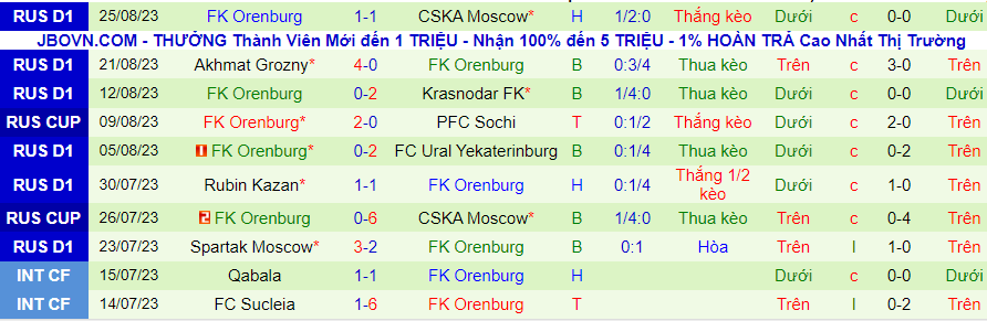 Ở vòng đấu trước tại cúp quốc gia Nga, Orenburg đã vượt qua Sochi trên sân nhà nhưng ở trận đấu này, họ đối diện vs thử thách lớn hơn. Trên sân khách, Orenburg không biết tới mùi chiến thắng trong 4 trận đấu liên tiếp.
