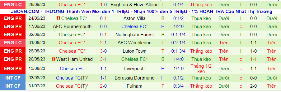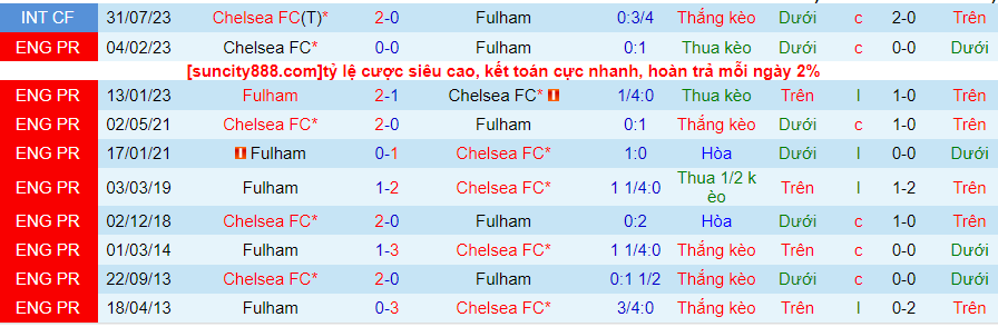 Lịch sử đối đầu giữa Fulham vs Chelsea
