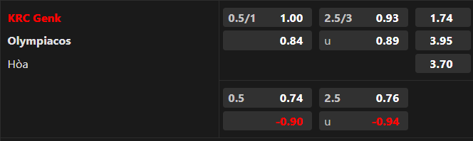 Soi kèo châu Á: Tỷ lệ chấp của Genk trước trận đấu này tăng từ -1/2 lên -3/4. Động thái ấy cho thấy niềm tin đang chuyển dịch vào Genk trong những ngày qua. Việc đối đầu vs đối thủ không quá mạnh trên sân khách như Olympiakos là thời cơ của Genk. Tại đây, họ thi đấu rất khó chịu khi chỉ thua 1/11 trận gần nhất. Trong lần duy nhất đón tiếp Olympiakos, Genk từng thắng 4-0.