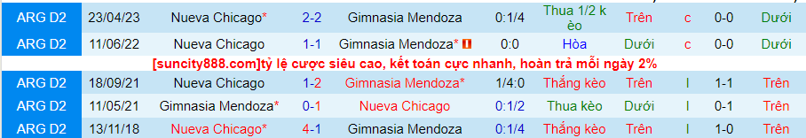 Lịch sử đối đầu giữa Gimnasia Mendoza vs Nueva Chicago
