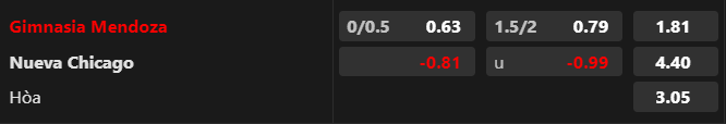 Soi kèo châu Á: Ở trận đấu này, nhà cái để Gimnasia Mendoza chấp -1/4 vs điểm ăn ở cửa này giảm sâu từ 0.72 xuống 0.63. Có thể thấy niềm tin hướng về phía chủ nhà. Việc thi đấu tốt trên sân nhà (thắng 6/7 trận gần đây) là yếu tố giúp Gimnasia Mendoza được tin tưởng. Trong khi đó, Nueva Chicago lại hơi đuối trên sân khách.