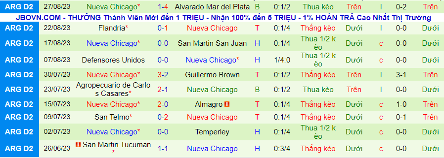 Nueva Chicago đang nằm trong top 8 nhưng vị trí của CLB này bị đe dọa nghiêm trọng. Trong thời gian qua, họ cũng không thi đấu thành công khi chỉ giành chiến thắng trong 1/4 trận đấu gần nhất.