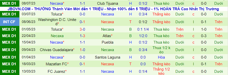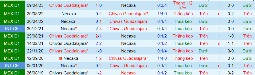 Nếu tính trên chặng đường dài, Necaxa không phải là kênh đầu tư ưa thích khi thua kèo trong 6/8 trận đấu gần nhất. Trên sân khách, tình hình tệ hơn vs Necaxa khi họ thua tới 7/10 trận đấu gần nhất.