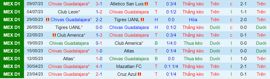 Đáng chú ý, nếu tính cả giai đoạn cuối mùa giải trước, Guadalajara Chivas đã có 5 trận đấu bất bại liên tiếp và thắng kèo trong cả 5 trận đấu. Trên sân nhà, Guadalajara Chivas đã giành chiến thắng trong 5/7 trận gần đây.