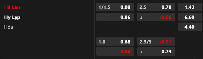 Tỷ lệ kèo Hà Lan vs Hy Lạp