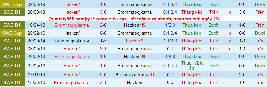 Lịch sử đối đầu giữa Hacken vs Brommapojkarna