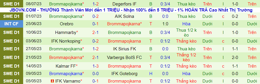 Thống kê 10 trận gần nhất của Brommapojkarna