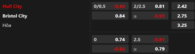 Soi kèo châu Á: Ở thời điểm mở kèo, nhà cái để tỷ lệ 0:0 nhưng tới sáng 25/8, Hull đã nhảy lên chấp -1/4. Rõ ràng, niềm tin đang hướng vào cửa Hull. Việc Hull đang có đà vươn lên vs 2 chiến thắng liên tiếp cho thấy họ xứng đáng nhận được niềm tin. Ở mùa giải trước, Hull cũng chấp -1/4 trên sân nhà trước Bristol và họ đã thắng 2-1.