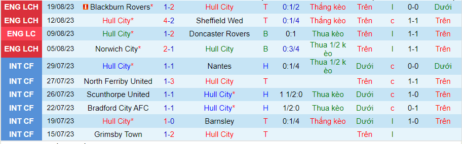 Sau trận mở màn thua Norwich City và bị Doncaster loại khỏi cúp Liên đoàn Anh, Hull đã trở lại khi giành chiến thắng trong 2 trận đấu gần đây ở giải hạng nhất Anh trước Blackburn và Sheffield Wed. Điều này giúp Hull vươn lên vị trí thứ 7 vs 6 điểm, chỉ kém đội đầu bảng Ipswich Town đúng 3 điểm.