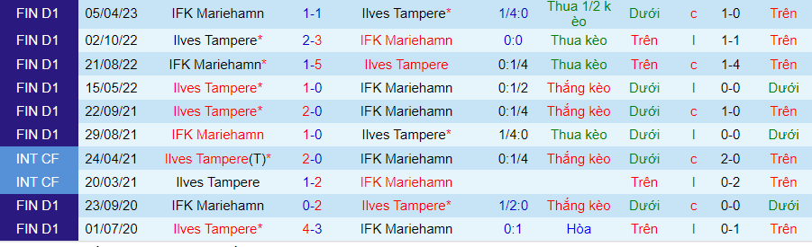 Trong 8 trận đấu gần nhất, IFK Mariehamn chỉ có được 1 chiến thắng trước KuPS. Họ cũng không phải là kênh đầu tư ưa thích trong thời gian qua khi chỉ thắng kèo trong 1/6 trận đấu gần đây. Trên sân khách, IFK Mariehamn thua 4/6 trận đấu từ đầu mùa.