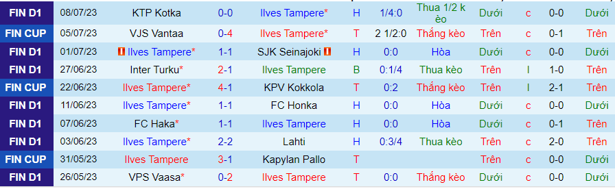 Thống kê 10 trận gần nhất của Ilves Tampere