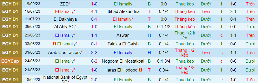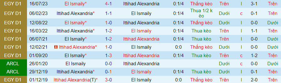 Tại đây, đội bóng này đã thắng tới 4/6 trận đấu gần nhất (thắng kèo 4/6 trận). Đáng chú ý, trong trận đấu gần nhất trên sân nhà, Ismaily đã giành chiến thắng 4-1 trước Ittihad Alexandria ở mùa giải trước.