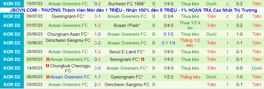 Trong khi đó, Ansan Greeners ở thế giới hoàn toàn trái ngược. Đội bóng này đang chìm nghỉm trong nỗi thất vọng khi toàn thua trong 8 trận đấu gần nhất. Trong đó, Ansan Greeners thua kèo tới 7 trận.