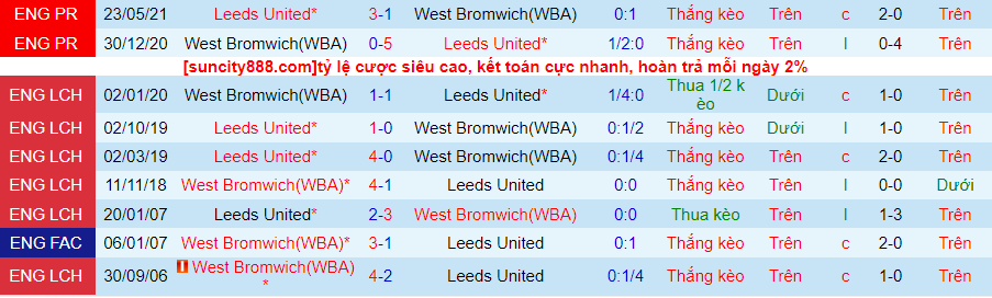 Lịch sử đối đầu giữa Leeds vs West Brom