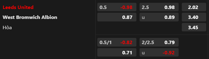 Soi kèo tài xỉu: Trận đấu có khả năng chứng kiến nhiều bàn thắng. Trong những ngày qua, niềm tin đang hướng về cửa Tài khi điểm ăn hạ từ -0.98 xuống 0.96. Thống kê cho thấy 7/9 cuộc đối đầu của hai đội trong quá khứ có nhiều bàn. Kịch bản này xuất hiện trong 14/20 trận gần nhất của Leeds và 13/17 trận gần đây của West Brom.