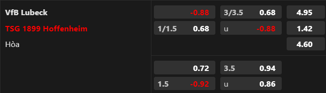 Soi kèo châu Á: Dù hơn đối thủ về mọi mặt nhưng Hoffenheim lại bị nghi ngờ trong trận đấu này. Tỷ lệ chấp của Hoffenheim đã giảm sâu từ -1 1/2 xuống -1 1/4. Rõ ràng, việc Hoffenheim thua kèo 4/5 trận gần đây khiến họ bị nghi ngờ. Lubeck chuẩn bị sẵn tâm lý tử thủ như những gì họ đã làm vs Saudhansen.