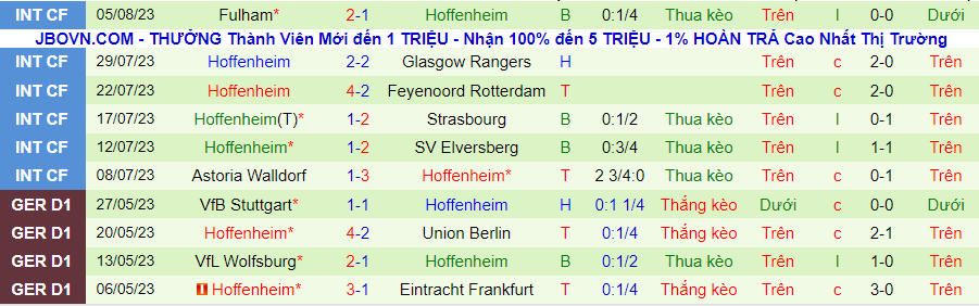 Trong giai đoạn mùa Hè 2023, Hoffenheim không thi đấu thành công trong các trận giao hữu. Họ chỉ giành chiến thắng trong 1/5 trận đấu gần đây. Rõ ràng, Hoffenheim cần một chiến thắng để tìm cú hích trước mùa giải mới.