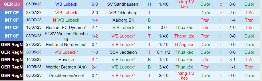 Lubeck chỉ là CLB mới thăng hạng ở giải hạng 3 Đức mùa giải này. Trong trận ra quân, họ đã xuất sắc cầm chân Sandhausen vs tỷ số 0-0. Có thể thấy Lubeck sẵn sàng tử thủ để hướng tới kết quả tốt.