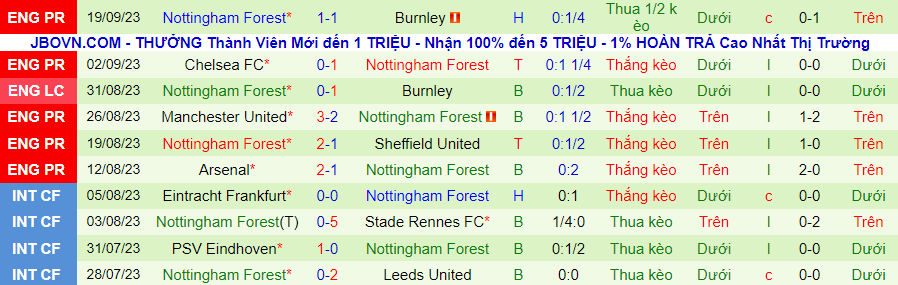 Đội bóng này đã thắng kèo trong 5/7 trận đấu gần nhất. Trong đó, ở hai cuộc chiến vs đối thủ mạnh như Arsenal, Man Utd, Nottingham chỉ thua sát nút và thắng kèo. Rõ ràng, Nottingham không hề dễ đối phó.