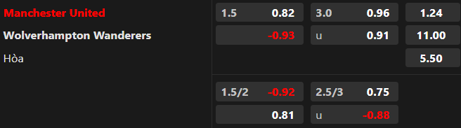 Tỷ lệ kèo châu Á: MU -1 1/2